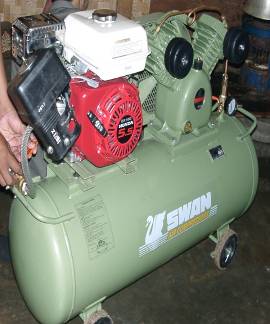 Biogas dari limbah sawit diuji coba dengan mesin kompresor. Mesin dimodifikasi sedikit agar bisa menggunakan dua bahan bakar: bensin dan gas. Percobaan ini berjalan dengan lancar.