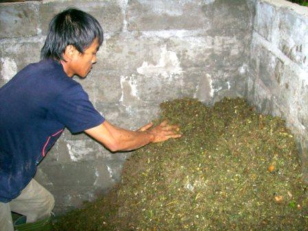 ditampung di bak pengomposan