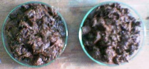 TKKS sisa hidrolisis dari sampel B, waranya hitam dan terlihat lebih hancur.