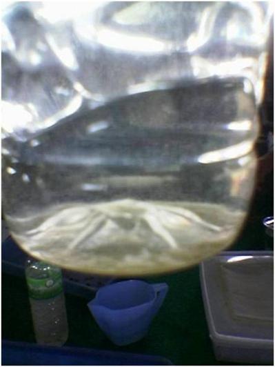 Gambar 2. Kultur stok NPS yang disimpan di dalam botol air kemasan