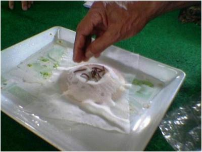 1. Ulat yang mati karena nematode dipilih dan dipisahkan dari ulat-ulat yang lain. Ulat-ulat tersebut diletakkan di atas kain yang telah disiapkan sebelumnya.
