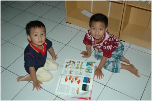 Royan dan Abim asik membaca buku kesayangan mereka.