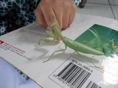 Jika menemukan binatang mereka akan senang sekali. Misalnya saja ketika ada seekor belalang sentadu/belalang sembah yang mampir ke rumah. Belalang itu hinggap di salah satu kursi teras. Ibrahim yang pertama melihatnya girang sekali. Dia segera mengambil buku belalang sentadu yang mencocokkan gambar di buku itu dengan belalang sebenarnya. Dia pun juga mengajak ngobrol belalang itu.