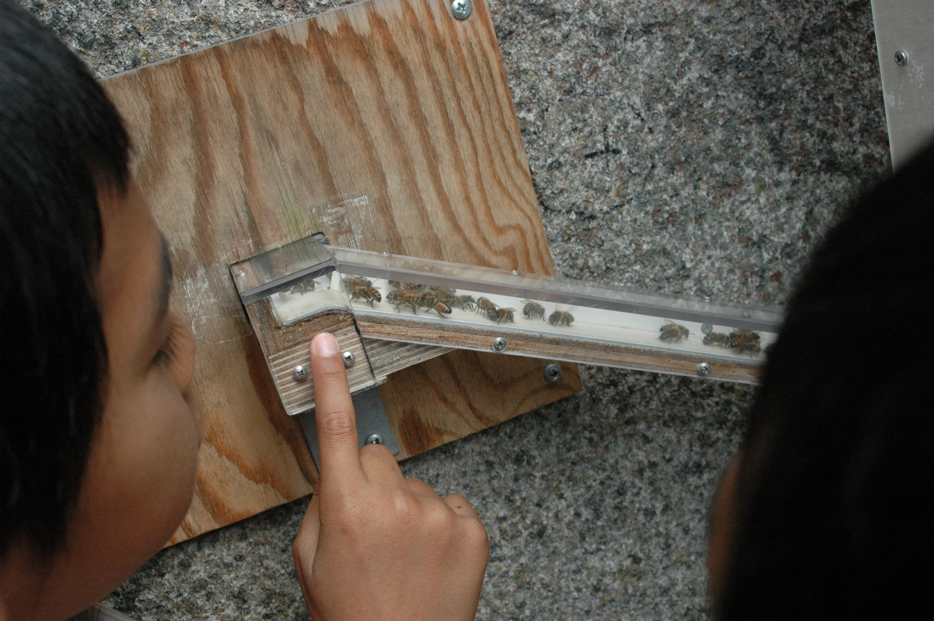Royan menunjukkan sarang lebah yang sedang dia amati. Sarang ini masih ditinggali dan ada beberapa lebah di dalamnya.