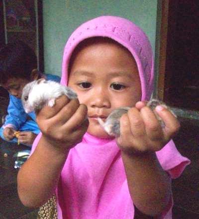 Anak-anak pun akan suka bermain dengan hamster. Hamster mudah dipegang, jalannya pun tidak secepat kelinci atau marmut. Hamster juga tidak suka mengigit seperti kucing. Jadi relative lebih aman untuk anak-anak.