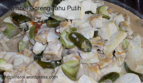 Ini salah satu variasi sambel goreng. Bahan utamanya adalah tahu putih, tetapi oleh Emak diberi tambahan sedikit tempe. Rasanya benar-benar nikmat.