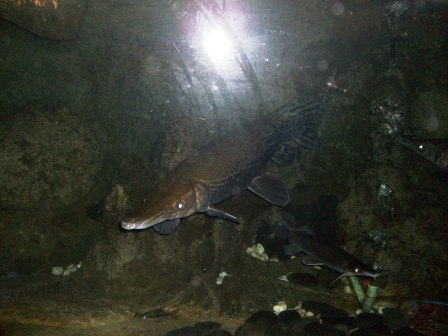 Sebenarnya di Purbalingga tidak hanya ada Taman Reptil, tetapi juga ada Taman Ikan Air Tawar yang letakknya berdekatan. Kami pergi ke Purbalingga melalui jalan alternatif Pabuaran. Lokasi Taman Ikan Air Tawar lebih dekat, jadi kami datang dulu di taman ini. Ide pembuatan taman ini mungkin terinspirasi oleh Sea Word yang ada di Ancol, tetapi yang di sini khusus air tawar. Penataannya masih cukup sederhana. Aquarium-aquarium di pajang berderet seperti pameran. Belum ada penataan yang lebih menonjolkan dunia ikan air tawar. Salah satu yang cukup menarik adalah terowongan aquarium air tawar.