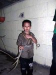Subhanallah, ternyata Ibrahim tidak tampak takut sama sekali. Umumnya anak kecil akan lari ketakutan ketika melihat ular. Ibrahim justru sebaliknya, dia segera mendekat dan memegang ular itu. Penjaga itu pun seger mengalungkan ular ke leher Ibrahim. Ibrahim senang sekali. Dia aku foto beberapa kali.