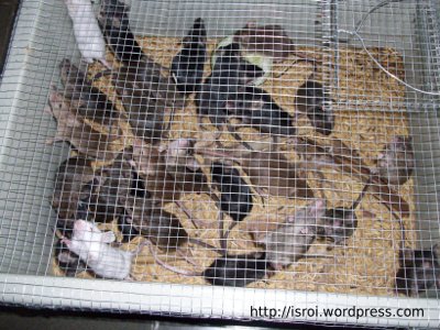 • Coba perhatkan di gambar kandang yang di bawah/mencit. Ada pintu untuk memasukkan dan mengeluarkan tikusnya. Kawat ramnya dibuat sedemikian rupa jadi mudah untuk dibuka dan ditutup. Ketika dibersihkan, kawatnya dipindahin dulu, tikusnya dipindah ke kandang yang lain.