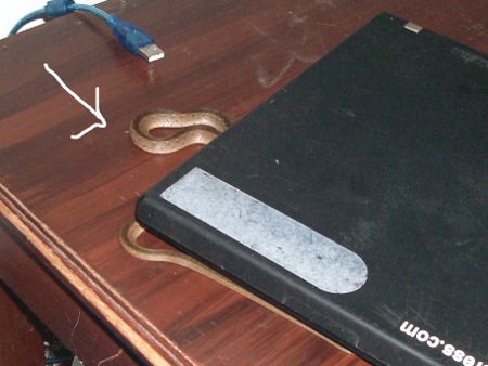 Ketika sudah siap-siap mau tepar…aku pingin bersih-bersih meja…tak tahunya ada ular lagi mlungker di samping laptopku…..Blaik…..!!!!!!