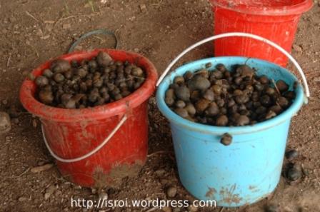 Keong mas dikumpulkan dengan ember. Setelah itu bisa kita manfaatkan untuk pembuatan MOL. Caranya adalah sebagai berikut: