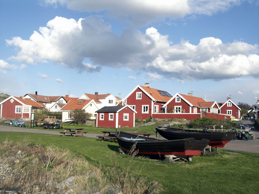 Ini adalah salah satu foto favoritku. Saya suka sekali dengan foto ini. Pemandangannya khas Swedia banget. Rumah dengan cat warna merah dan lis putih. Dua kapal di latar depan. Lagit pun cerah dengan awan-awan yang menarik. Kombinasi yang indah sekali. Foto ini saya jadikan wall paper di layar monitor komputerku.