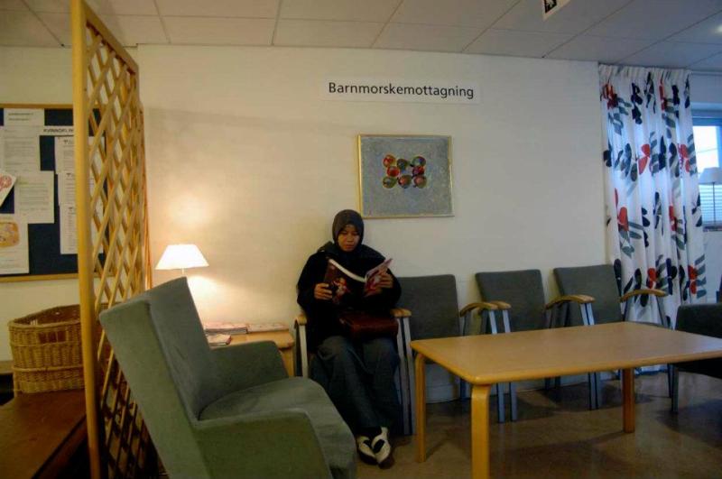 Menunggu di ruang tunggu puskemas untuk pemeriksaan rutin kehamilan istri saya.