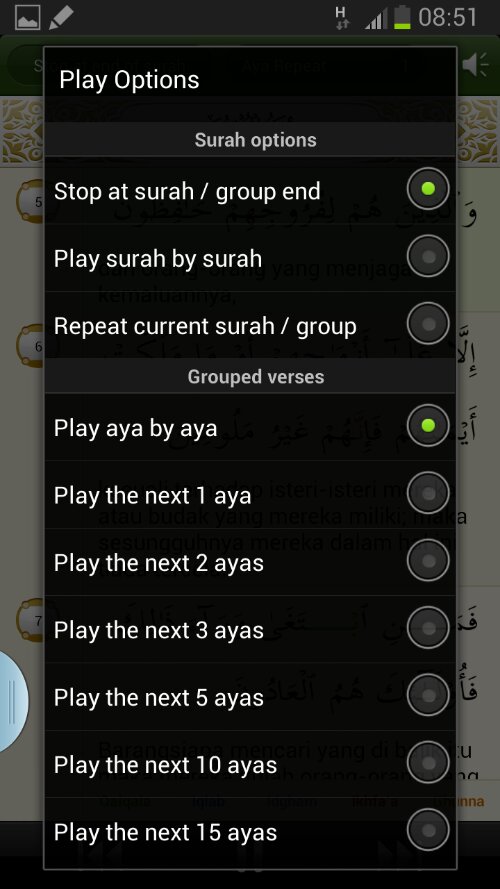Bacaan alquran juga bisa di ulang berdasarkan ayat ayat tertentu atau surat surat tertentu. Fitur ini sangat membantu ketika kita sedang meng hafal al qu an.
