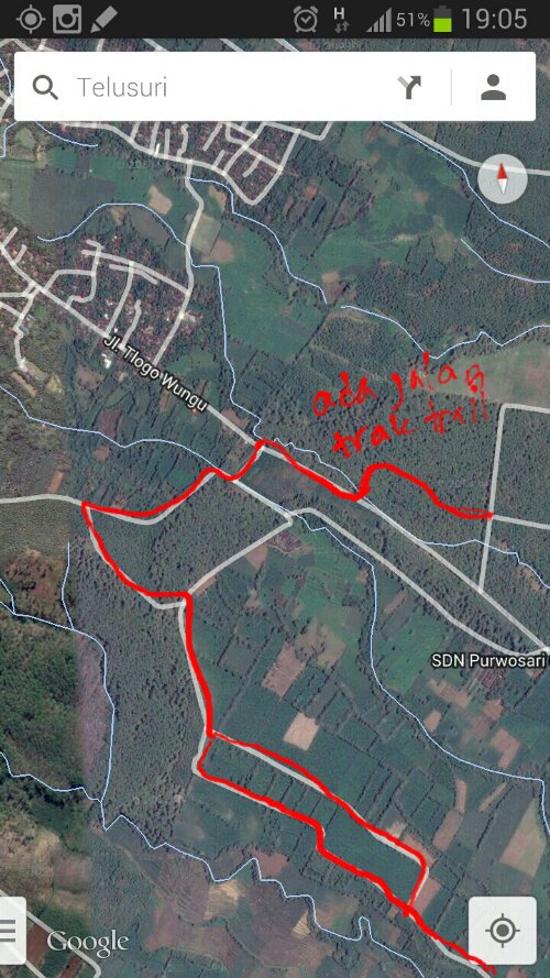Kami menyusuri desa kecil. Tidak bertemu dengan mobil atau truk. Motor juga jarang2. Ternyata jalur ini tembus ke jalan tlogo wungu yang ke arah waduk guwo. Kami memilih jalan lain yang tidak lewat jalan aspal.