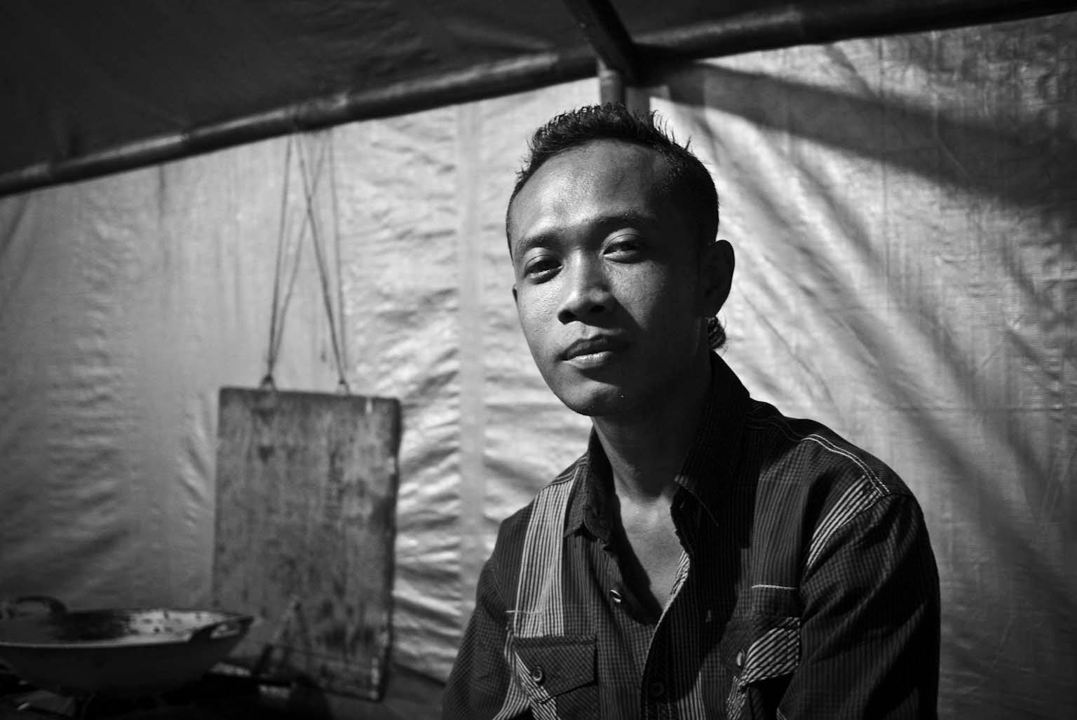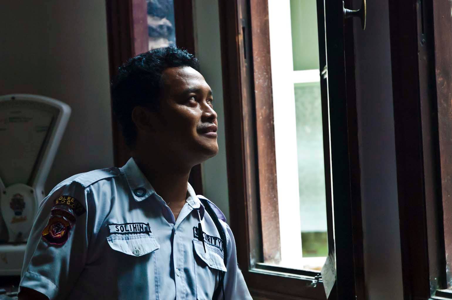 Untuk memotret orang saya lebih suka menggunakan lensa normal (35mm atau 50mm) dengan bukaan rana yang lebar, sedangkan kecepatan rananya menyesuaikan pengaturan sebelumnya. Pengaturan ini cukup membuat Dof (deep of field) yang sempit, sehingga latar belakang subjek foto bisa dibuat sedikit kabur. Karena saya tidak punya perlengkapan lighting, semua foto saya hanya mengandalkan cahaya alami atau cahaya dari lampu biasa. Bahkan saya sangat jarang menggunakan lampu flash bawaan kamera. Cahaya yang saya suka adalah cahaya matahari. Terutama cahaya matahari yang menerobos lewat jendela atau pintu di pagi atau sore hari. Cahaya matahari ini lebih terkesan ‘lembut’. Saya juga lebih suka cahaya yang berasal dari sisi samping subjek. Arah cahaya ini akan membentuk profil wajah.