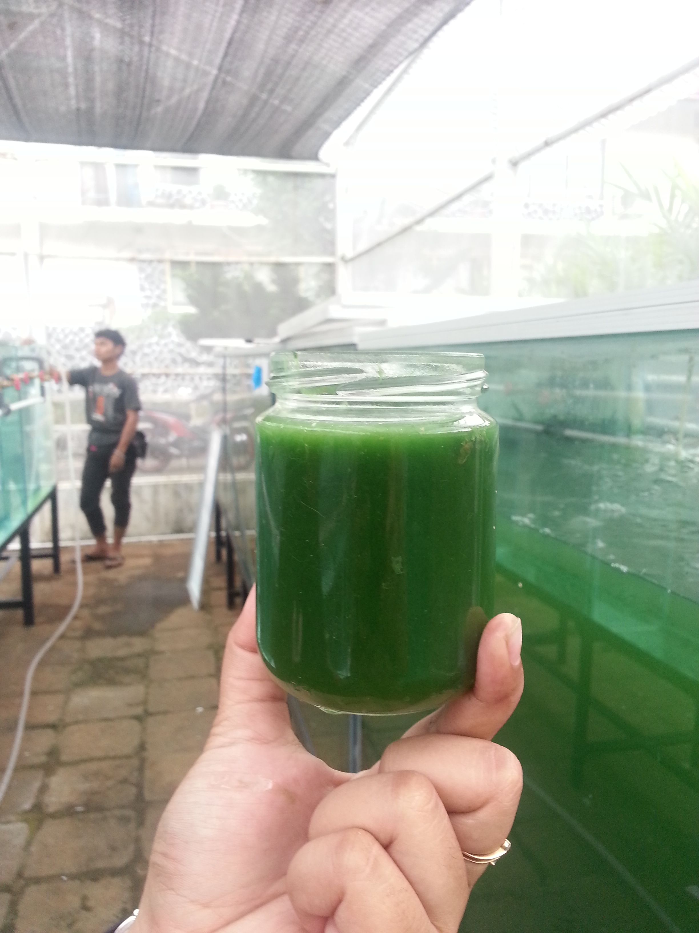 Serbuk spirulina ini yang kemudian dijadikan kapsul, tablet, atau ditambahkan pada makanan yang lain.Menernakkan spirulina susah gampang. Saya masih banyak belajar dan coba-coba. Untuk tahap awal ini sudah lumayan, lah. Ada 5 aquarium besar dengan volume total sekitar 2 m2. Kata temen saya kalau produksnya optimal bisa menghasilkan > 2 kg spirulina serbuk. Saya sudah tidak sabar pingin memanen spirulina ini dan mencicipi ‘khasiatnya’. Jadi penasaran…..hehehehe…