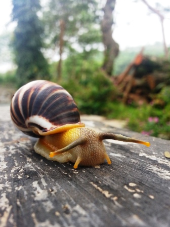 Minggu pagi di Banaran Resort and Hotel. Udara segar di ketinggian 900 dpl menarik kami untuk jalan-jalan pagi menyusuri perkebunan kopi Getas. Ada banyak yang menarik. Salah satunya adalaha bekicot-bekicot yang ternyata jumlahnya sangat banyak. Jenisnya pun sedikit beda, karena bekicot-bekicot ini warnanya putih. Bekicot unik ini menarik saya untuk memotretnya. Saya memotret dengan menggunakan kamera HP Smartphone Samsung Galaxy Note 2. Smartphone Android yang sudah cukup berumur. Dengan sedikit kreatifitas, bekicot ini bisa menjadi model yang menarik.