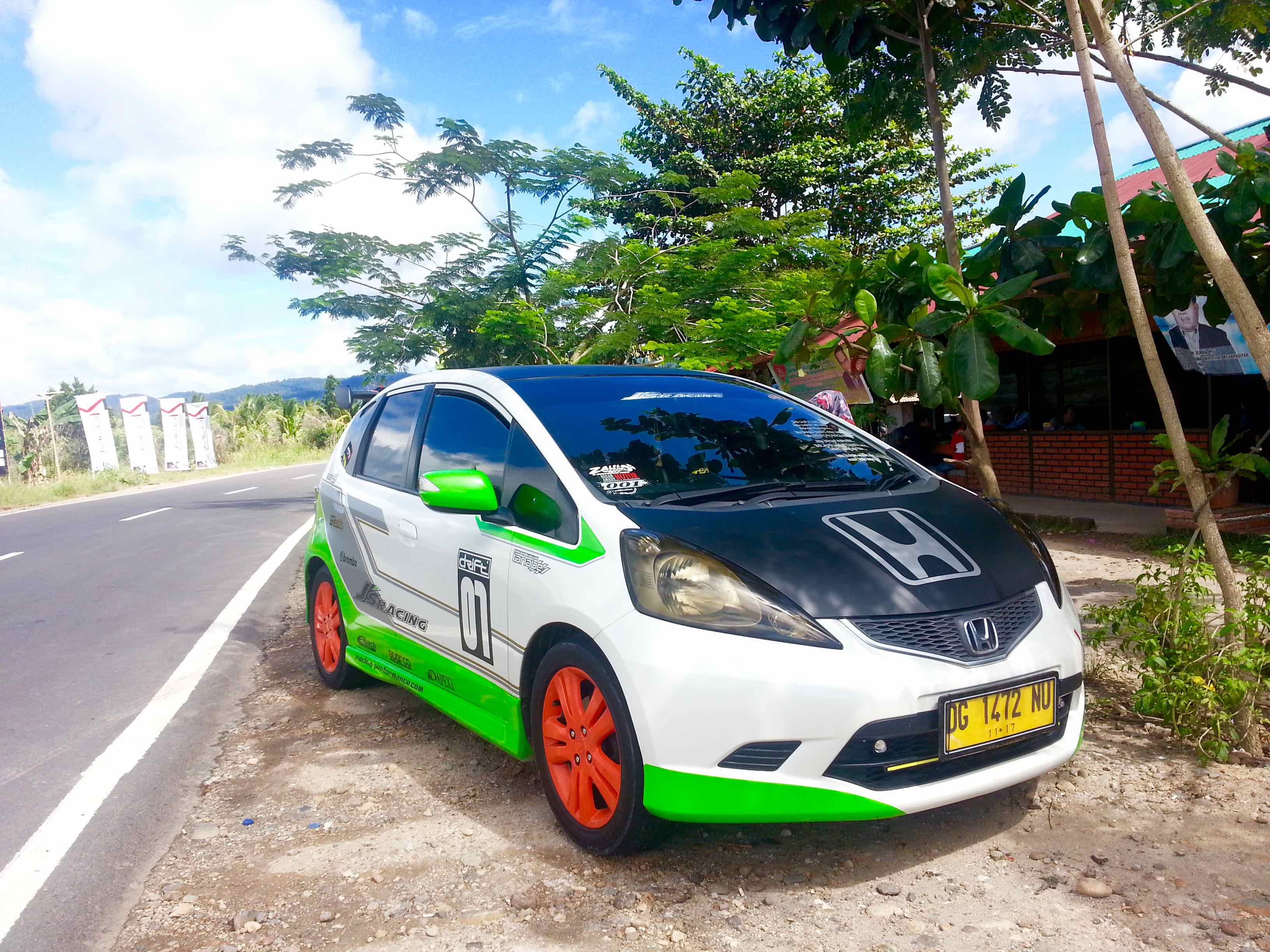 Honda Jazz jadi angkot di pulau Halmahera jurusan Sofifi-Tobelo. Keren dan full music mirip diskotik. (Foto koleksi Pribadi)
