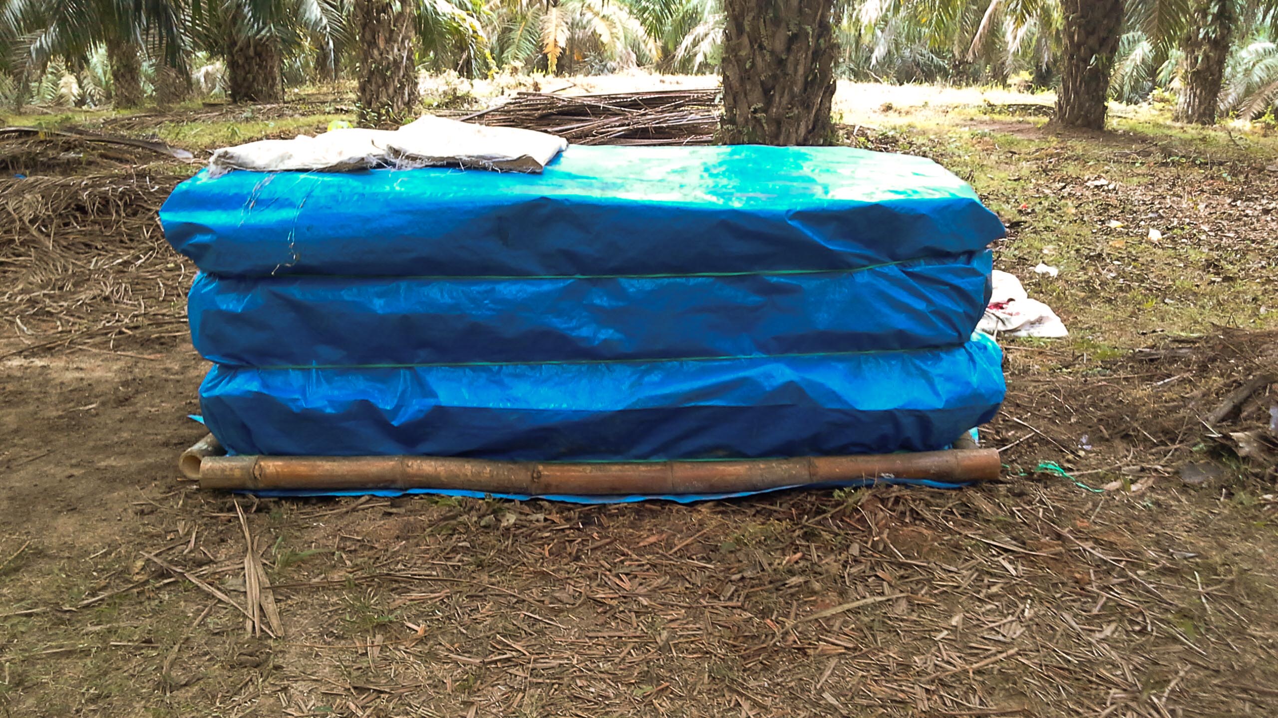 Siapkan juga air untuk membasahi pelepah sebanyak kurang lebih 200 – 300 liter. Semakin kering bahannya semakin banyak air yang dibutuhkan.