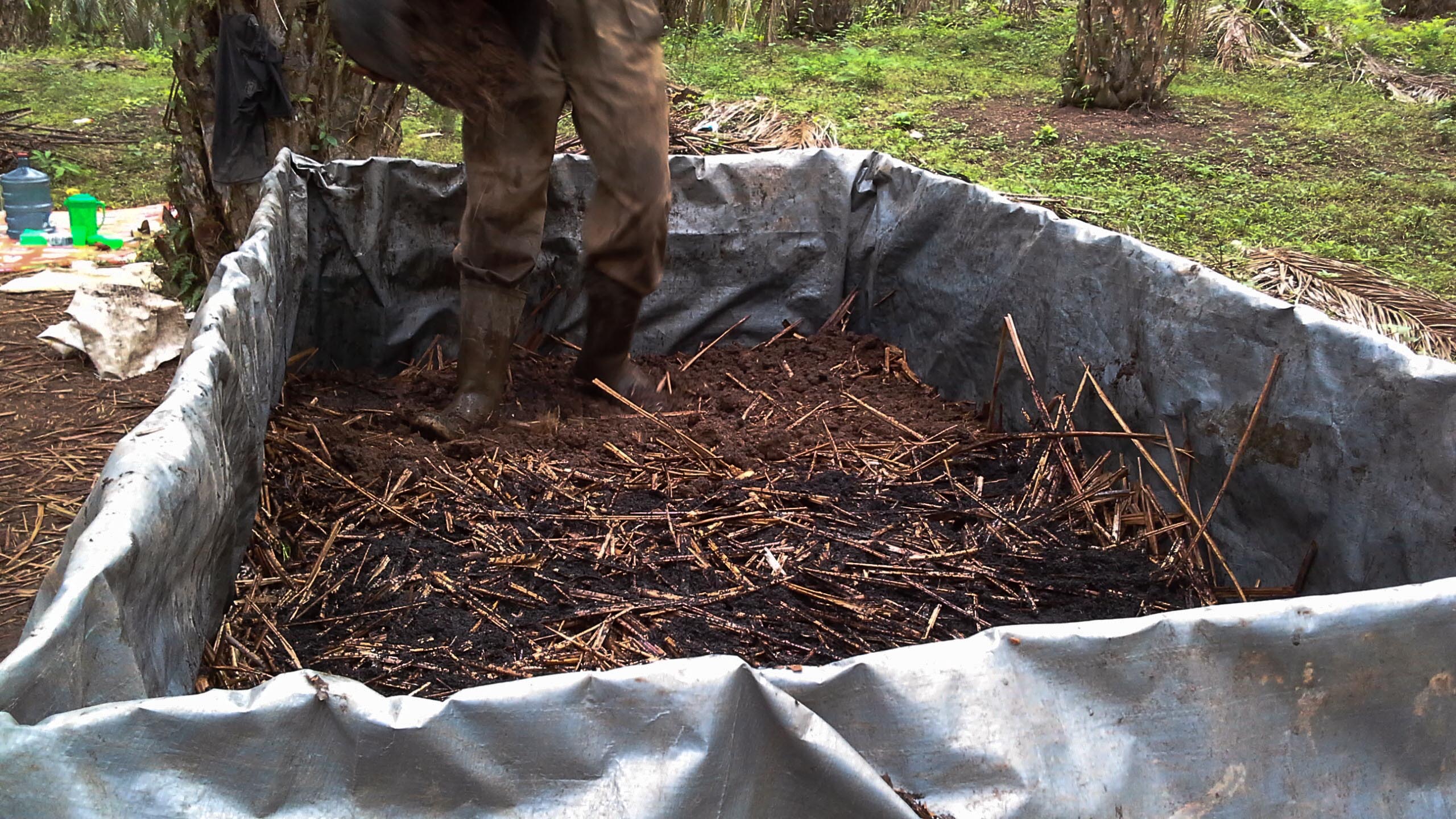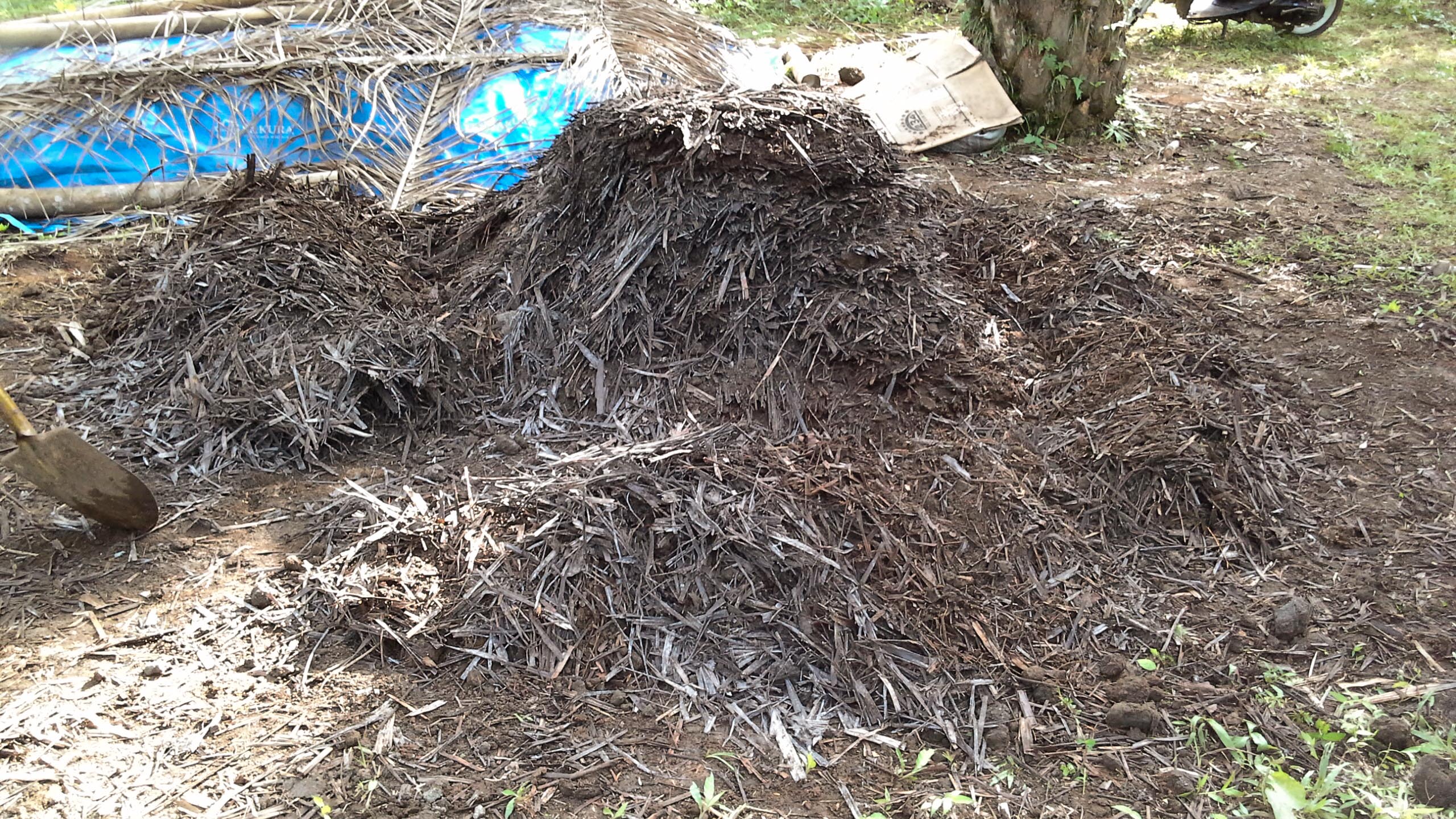 Promi, aktivator untuk mempercepat pengomposan pelepah sawti. Info Promi: https://isroi.com/promi/