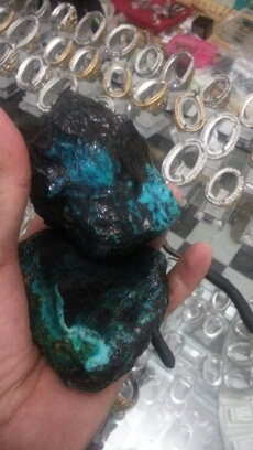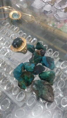 Namun, temen saya yang hobi batu menemukan toko Gemstone yang menjual Bacan dengan harga miring. Lokasinya di luar kota dan relatif sepi pembeli. Temen2 saya ini sudah terbiasa membeli Bacan, jadi tahu harga pasaran Bacan. Toko itu menjual cincin bacan yang sudah digosok dalam berbagai ukuran. Ada juga bongkahan dan kerikil Bacan.