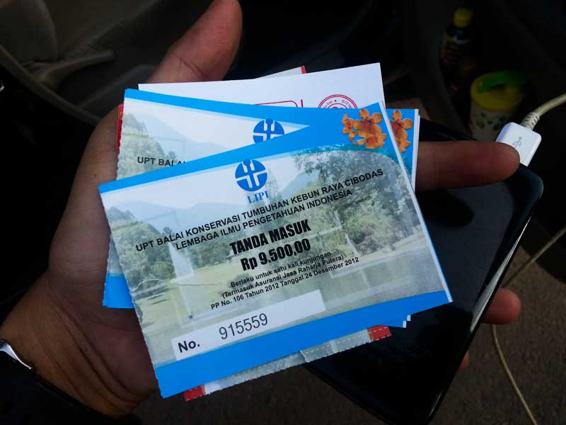 Tiket masuk kebun raya Cibodas, Cipanas.