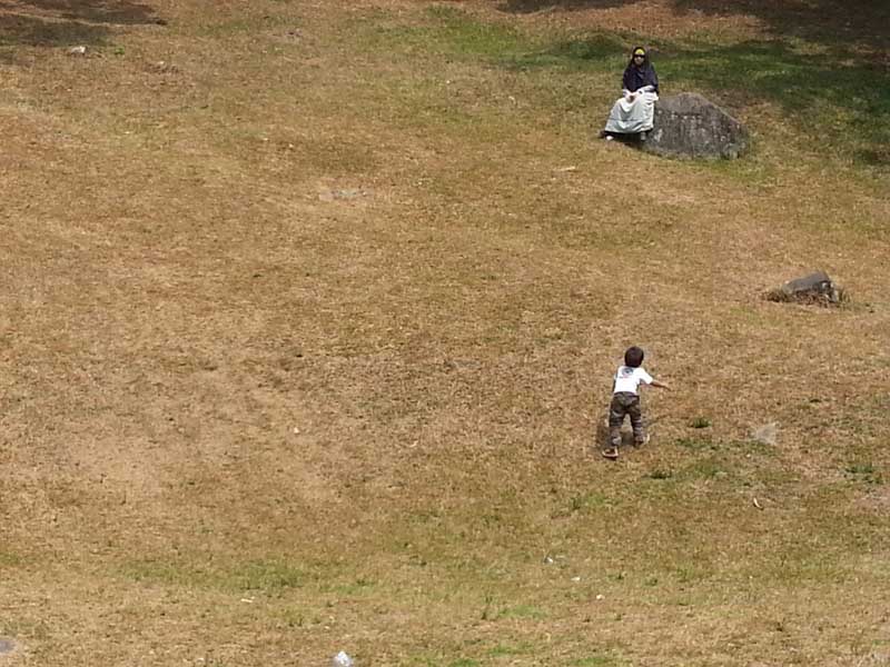 Anak-anak seneng banget bermain-main di taman itu. Terutama Yusuf, dia lari sana-sini, plosotan dan kejar-kejaran dengan kakaknya.
