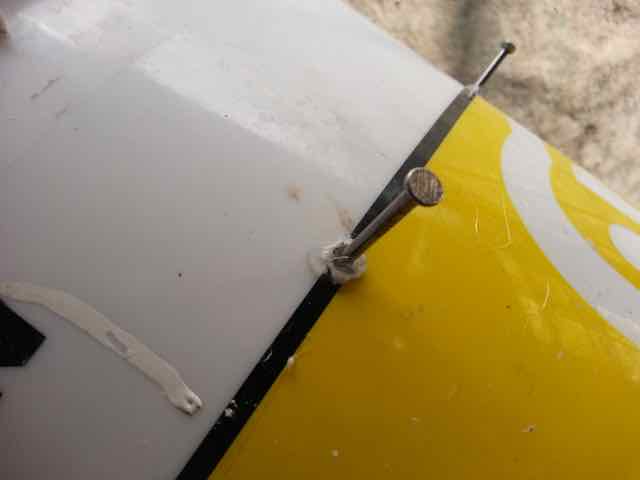4. Beri lubang paku/besi/bambu untuk penjangga. Jaraknya kurang lebih 20cm dari sisi atas.