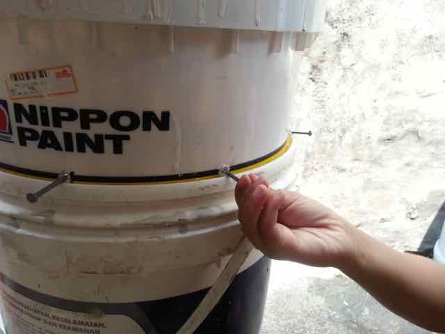 3. Buat juga lubang-lubang di sisi samping tempat bekas cat hingga kira-kira 20 cm dari sisi atas.