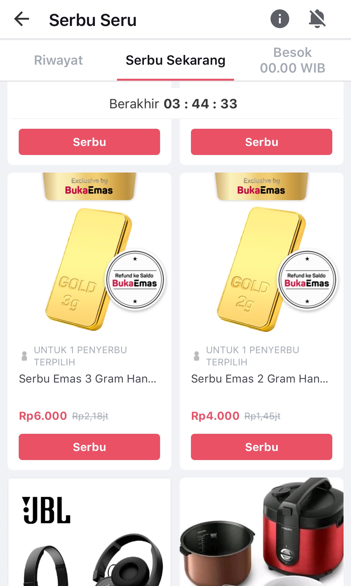 Sampai akhirnya saya lihat ada fitur baru di Bukalapak, yaitu BukaEmas. Ada iklannya bersliweran di applikasi. Saya coba-coba baca penjelasanya, aturan mainnya dan lain-lain. Saya semakin tertarik ketika ada promo Serbu yang uangnya masuk ke rekening BukaEmas. Coba-cobalah saya.