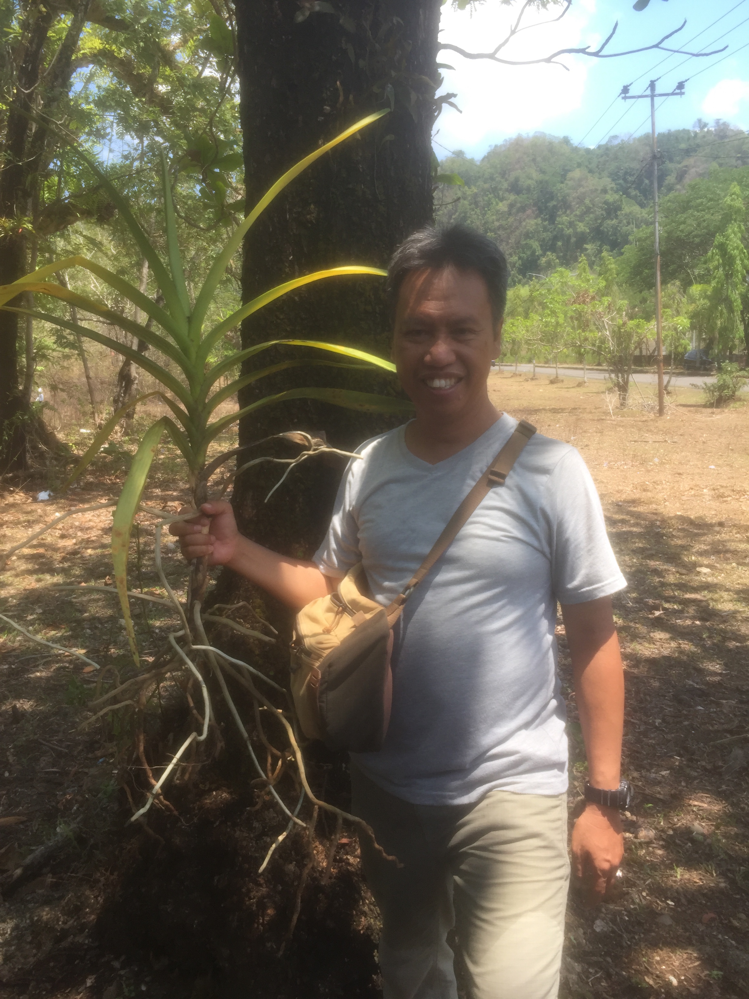 Di hari yang lain, sekilas saya lihat di batang pohon mangga ada banyak anggrek bulan sulawesi. Saya dekati pohon itu, ternyata anakannya banyak banget. Ada yang gede dan ada yang kecil. Saya minta ijin ke yang punya rumah, dan mereka mengijinkan. Saya ambil cukup banyak anggrek bulan ini. Sampai di mess, anggrek-nya saya bagi-bagi ke Pak Seger dan Pak Wasis.