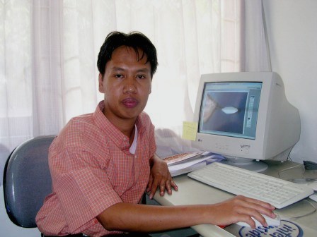 Fotoku waktu kerja di LRPI. Pekerjaanku lebih banyak berhubungan dengan komputer. Di sini aku belajar banyak tentang komputer. Dan dengan komputer di foto itu aku menjelesaikan buku komputer pertamaku. Seingatku foto ini diambil oleh Bagus.