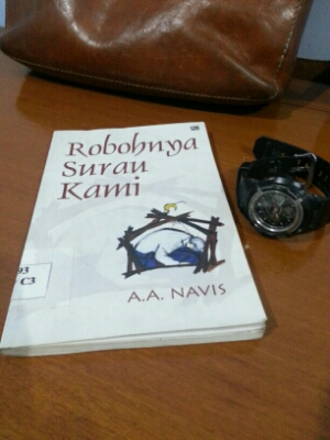 Saya akan kutipkan penggalan cerpen A.A. Navis yg judulnya ‘Robohnya Surau Kami’. Meskipun cerpen ini pertama kali terbit sdh cukup lama (1956), namun isinya masih tetap relevan sampai sekarang. Dikisahkan bahwa H Saleh yang rajin ibadah berdemo kepada Allah karena dimasukkan ke neraka. Mereka tidak terima dimasukkan ke neraka, padahal waktu hidupnya hanya dihabiskan hanya untuk beribadah dan menyembah Allah semata. Berikut cuplikannya: