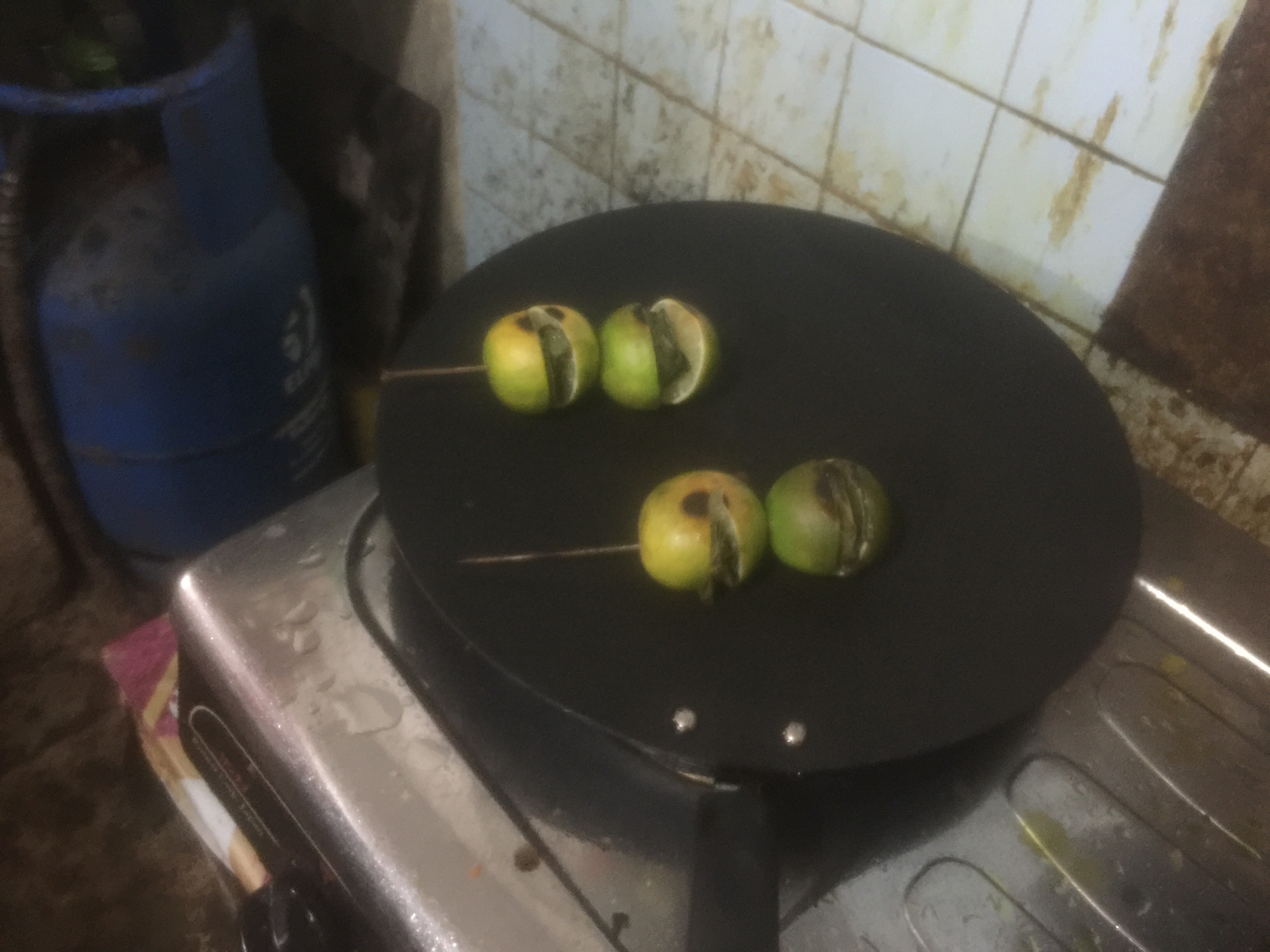 4. Jeruk dan sirih ditusuk dengan lidi seperti membuat sate.