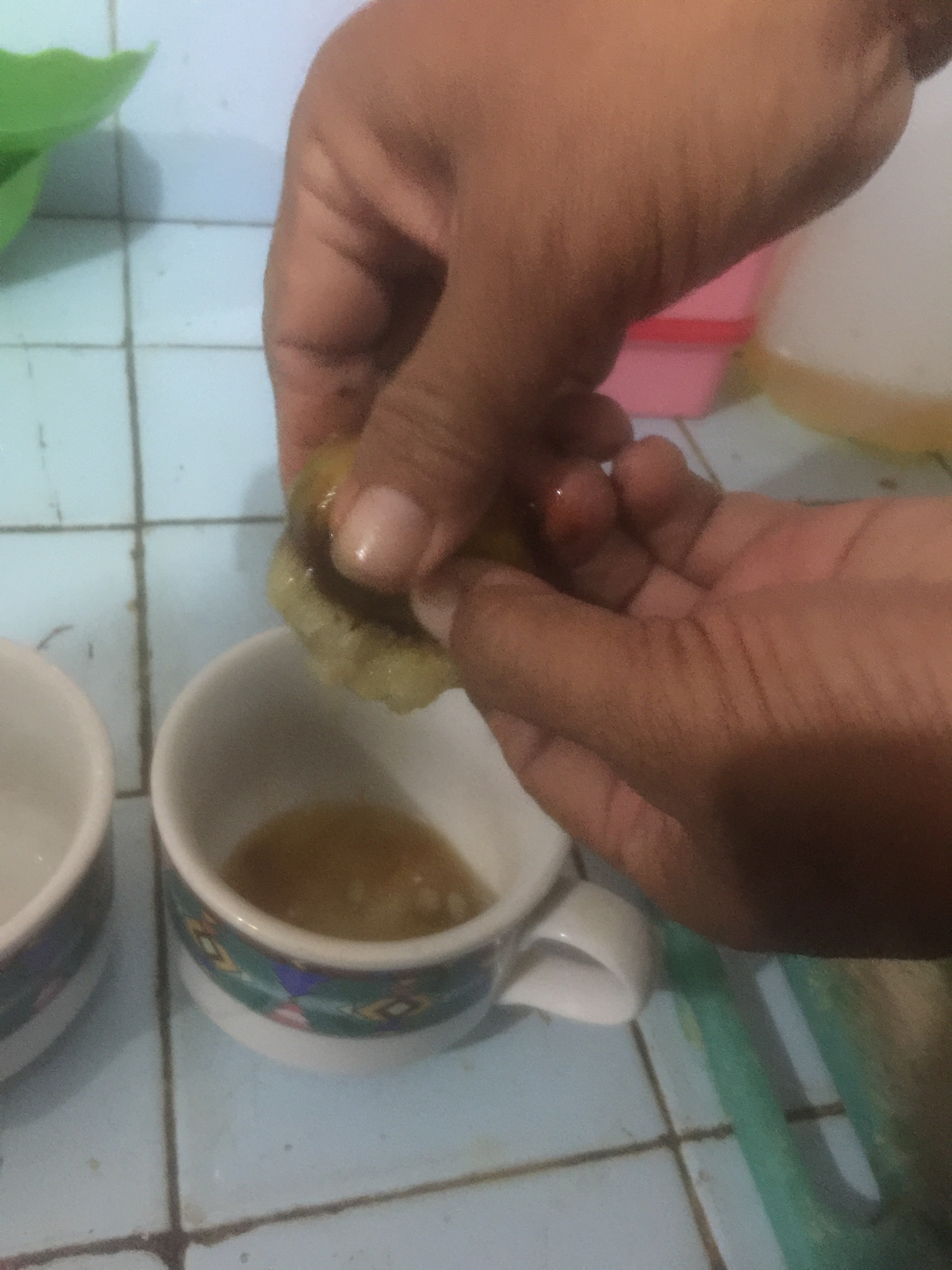 7. Air perasannya ditampung di dalam gelas.