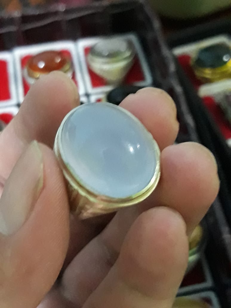Batu obi warna putih leci asli dari pulau Obi, Maluku Utara. Pulau Obi itu dekatnya pulau Bacan.