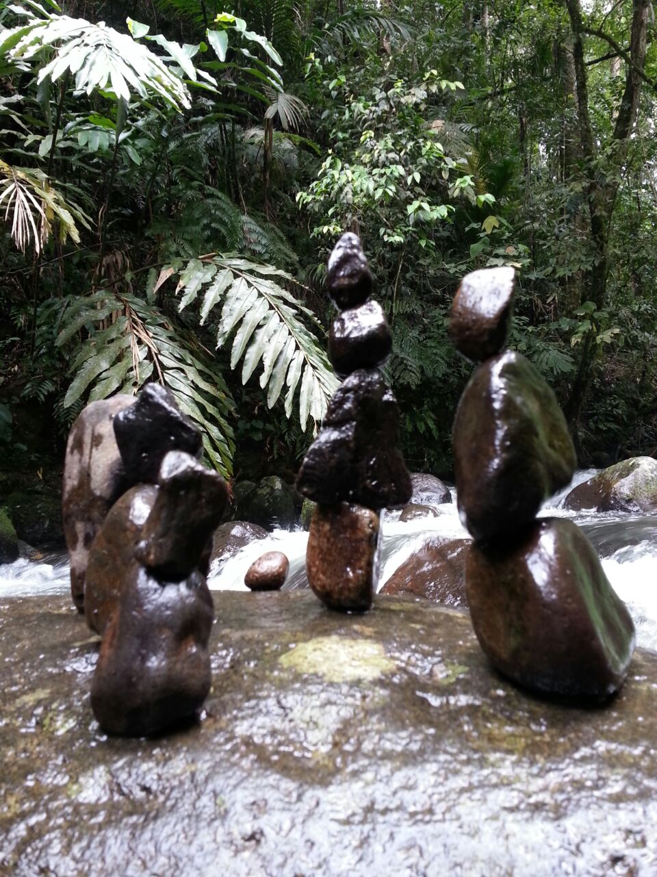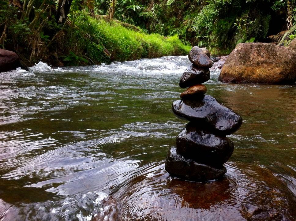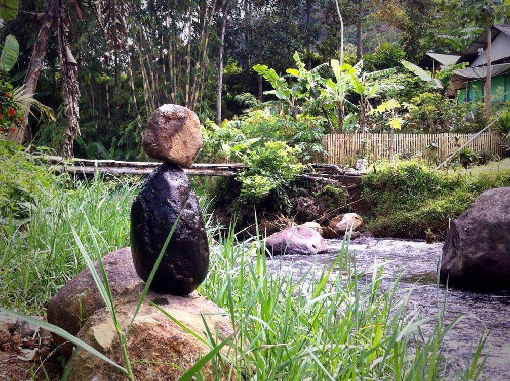 Anak-anak langsung masuk di sungai. Melihat banyak batu-batu Abim muncul ide untuk menyusun batu2 itu. Dia mencoba untuk menumpuk batu-batu setinggi mungkin. Bukan hal yang sederhana. Perlu kesabaran dan ketekunan agar batu2 bisa tegak dan seimbang. Abim berhasil. Yusuf yang jarang main air senang banget bisa mencebur ke sungai.