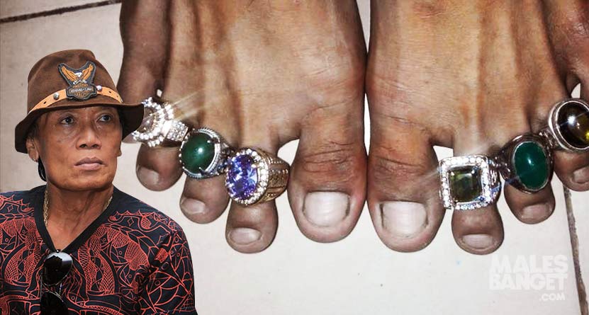 Batu cincin King Obi merah berbentuk runcing yang dipakai Iwan, sopir kami. (Foto koleksi pribadi)