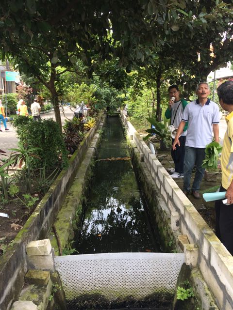 Bapak Dr. M. Bahrul Amig (Kadis LHK Kab. Sidoarjo) meninjua komposter sampah daun dari kantong terpal karya warga Perum Mutiara Citra Graha , Larangan – Sidoharjo.