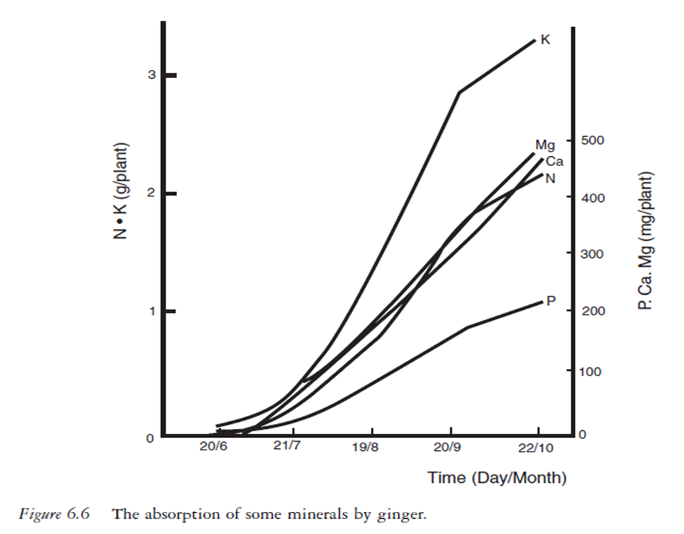 Dari laporannya Koh Kun, diperkirakan pupuk yang dibutuhkan untuk setiap panen 1000 kg jahe adalah: 6,34 kg N, 0,75 kg P2O5, dan 9,27 kg K2O. Kalau ingin panen 10 kg per polybag kebutuhan nutrisi pupuknya masing-masing per polybag adalah sebanyak 63,4 gr urea, 7,5 kg SP36 dan 92,7 gr KCl. Kebutuhan pupuk per hektarnya lumayan buanyak zekali. Nilai-nilai ini belum diperhitungkan efisiensi serapan haranya. Sebagai gambaran, untuk KCl saja agar produksinya setinggi itu perlu paling tidak 650 kg KCl per ha.